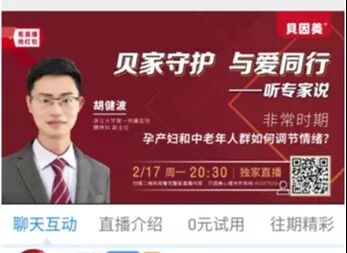 2月17日胡健波老师和贝因美合作,给孕产妇和中老年人做情绪调节主题直播,并且介绍了协会在此次疫情中的公益心理咨询活动,在线观看人数达5.2万人次。